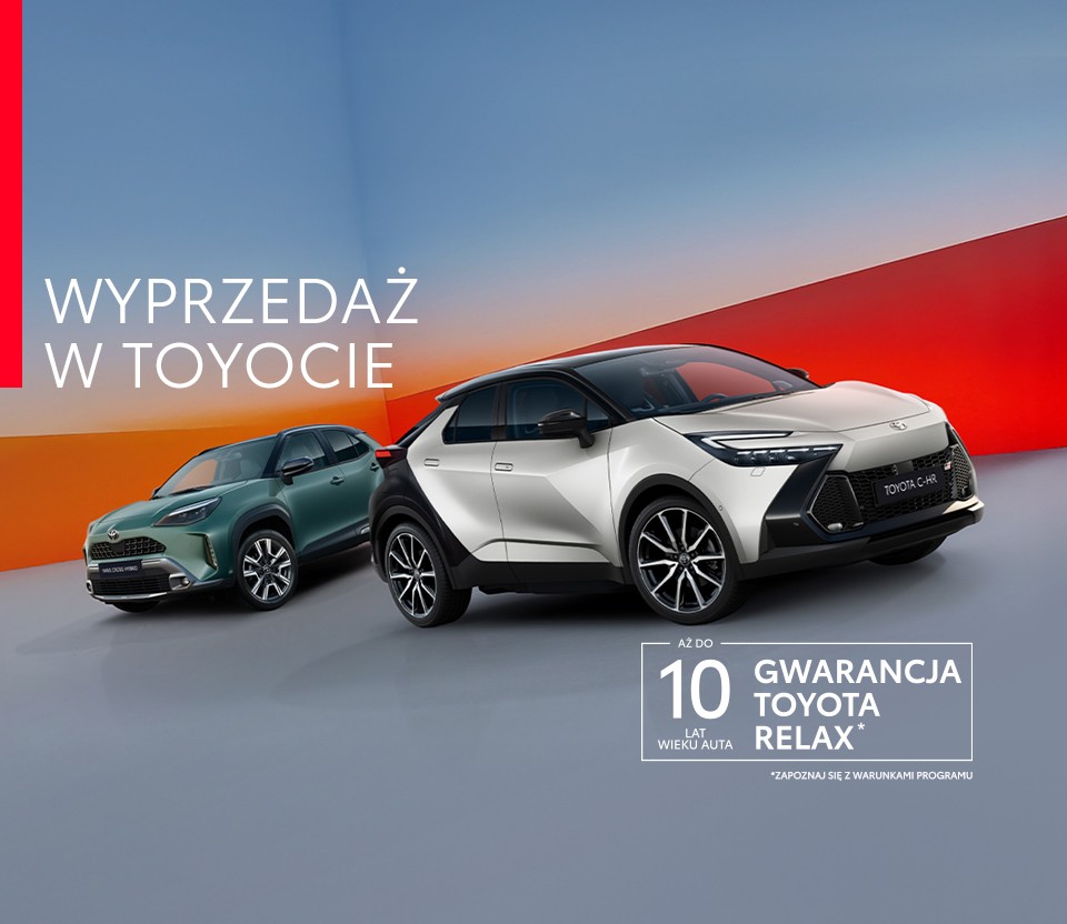 *Gwarancja Relax to oferta dla samochodów marki Toyota w wieku do 10 lat i z przebiegiem do 185 000 km (co wystąpi najpierw). Po wykonaniu przeglądu Relax w ASO Toyota, pojazd otrzymuje nową ochronę gwarancyjną, zazwyczaj na rok lub wymagany dla modelu interwał. Ważność gwarancji Toyota Relax można cyklicznie przedłużać przy kolejnych przeglądach Relax. Sprawdź warunki programu na: www.toyota.pl/relaxNOWOŚCI I WYDARZENIA